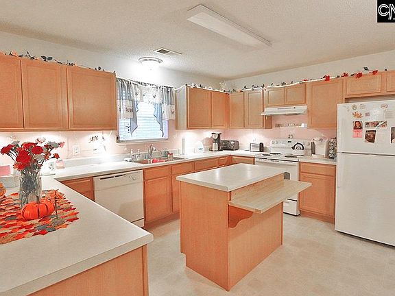 - Kitchen: Counter Tops-Formica, Pantry, Island, Nook, Cabinets-Stained, Floors-Vinyl