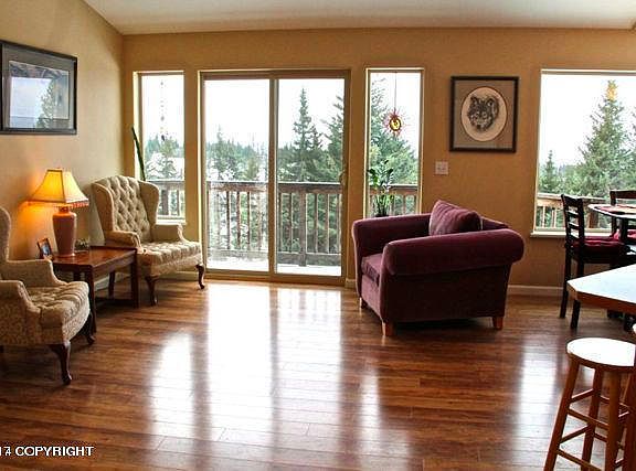 Like new and close to town home with impressive views of Kachemak Bay out to the Cook Inlet and Augustine Volcano. Main level master sweet, living room, and kitchen. Two additional spacious bedrooms, 1.25 bathroom, and family room in the daylight walkout basement. Also features low maintenance cement board siding and radiant in floor heat, not usually found in this price range. There is room to build a garage. Buyer to assume balance of natural gas assessment of approximately $2,700.