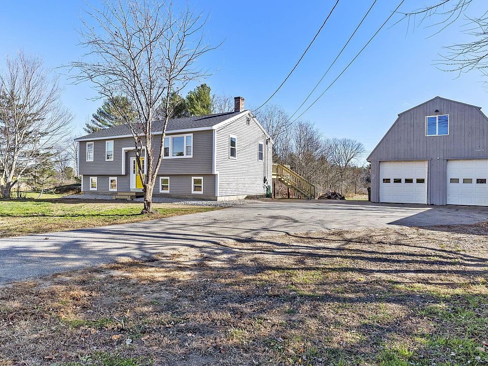 This affordable 3-bedroom split-level home sits on a 1.84 acre lot and is just a short trip to all of downtown Saco's conveniences. Inside, the main level offers a newly renovated kitchen with updated appliances and new flooring and fresh paint throughout. Off the hallway are the primary and second bedrooms – each share a large full bath. The third bedroom, a 2nd full bath, and a bonus room are located on the lower level. In need of shop space or extra storage? You'll love the oversized, detached garage with storage above. New roof installed on the main house in 2019. If you've been looking for a great opportunity in Saco, this is it!