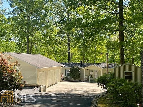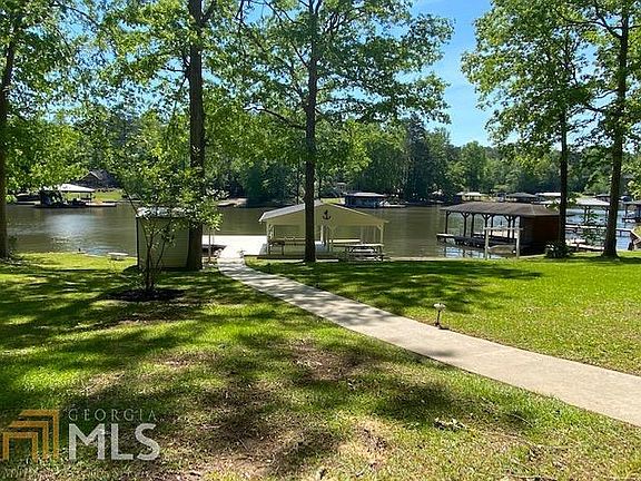 Beautiful waterfront home! This home is so well taken care of that you will think it's brand new. Not your everyday mobile home. This is a Horton Home with 2x4 construction and a brand new architectural shingled roof. Large covered deck for viewing the gorgeous lake view. There's also a triple-car detached garage. So many details; asphalt drive, 2 more buildings and the best is the double boathouse with max dock. Great view and deep water. All you need to bring are your clothes and toothbrush as the owners are selling furnished. (With exception of few personal items) Fiber optic cable, city water, and Ga Power.!