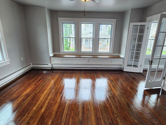Fully renovated. 2 bed, 1 bath, 2nd floor unit. New appliances, windows, fixtures, ceiling fans, and newly finished original hardwood floors. Washer/Dryer included in separate laundry room. Additional storage in basement and upstairs. Off street parking. No pets. 1200$/month. 1 year lease term, No pets. Owner pays water and sewer. Tenant responsible for electric and heat. 1200 security and first months rent upfront.