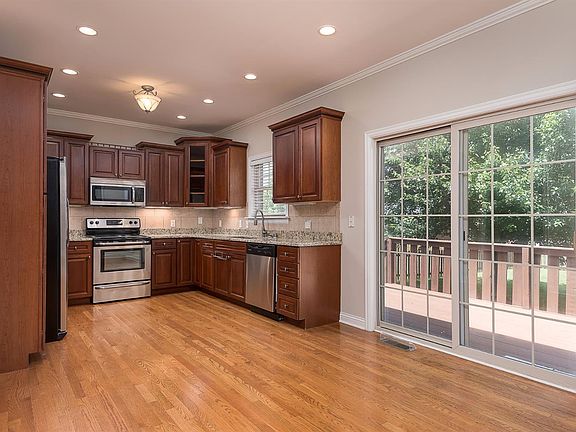 Beautiful 4 bedroom home on a finished basement located in the desirable Cherry Blossom Village neighborhood. This home has all of the updates you would want and a floor plan that suits any lifestyle. Impressive kitchen has updated cabinetry, granite counters, tiled back splash, and new stainless appliances. There is plenty of space to dine in the breakfast area or the formal dining room. This open floor plan is perfect for entertaining and will impress your guests with a two story great room and fireplace. First floor master has a wonderful ensuite with a large master walk-in closet. Upstairs you will find an additional three bedrooms that are all generously sized to fit your needs. Don't miss the custom bar in the basement and all of the additional space for relaxing or entertaining. Outside you will find a large deck and fenced yard. Call today to see this one!