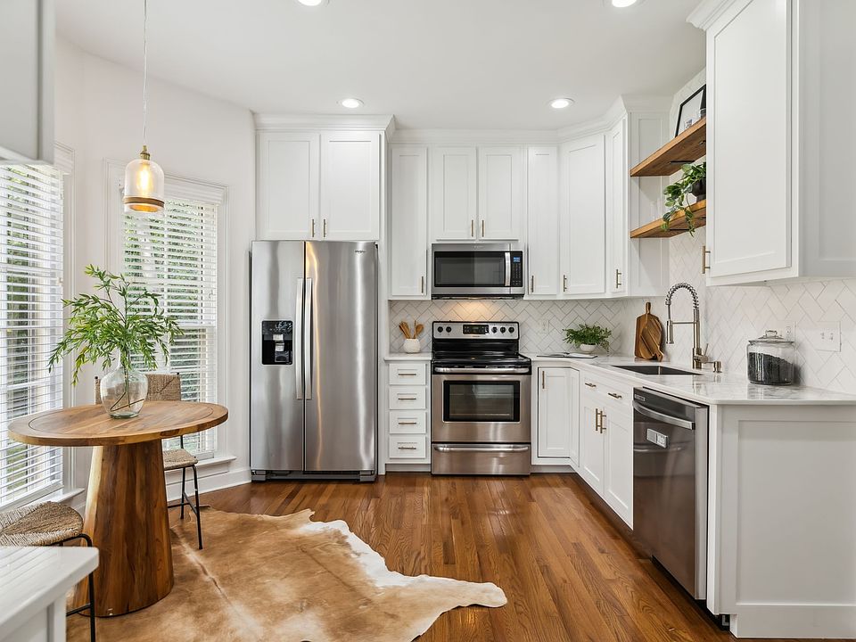 Maintenance-free Green Hills living! This one is tucked away at the end of a cul-de-sac in a private, highly desired location, walkable to restaurants and retail & extremely convenient to 12 South. Featuring 10 ft. ceilings, a 4 car garage & fully renovated kitchen and bathrooms, this home is definitely considered a unique find! Kitchen renovation includes custom cabinets to ceiling, dekton counters, new appliances, hardware, backsplash, lighting and shelving. Located less than 1 mile to 440 for easy commuting.