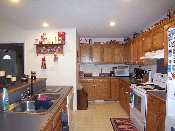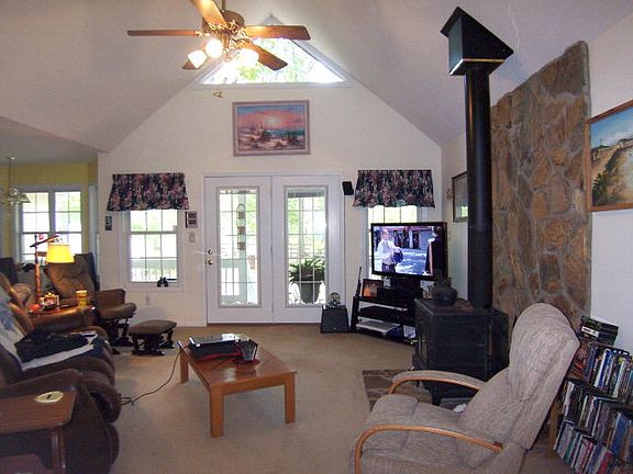 Spacious open floor plan with split bedrooms, eat in kitchen, family room with wooodstove, formal dining, front and back rocking chair porches. Partially fenced back yard. AHS Warranty.