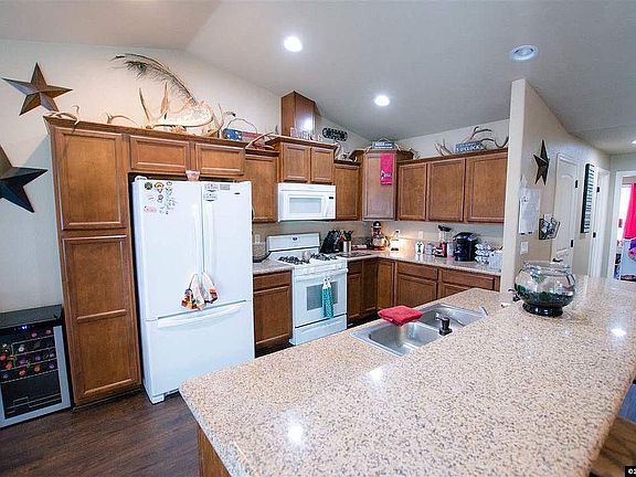 Beautiful newer stick built home near park, junior high, football stadium and soccer fields. Private backyard with patio, storage shed and dog run. Attached 2 car garage. Inside, high ceilings, brand new laminate flooring in living area, kitchen and 2 bedrooms. Kitchen has a island breakfast bar, large pantry, granite countertops, and all kitchen appliances stay. Open Great room style home perfect for entertaining. Oiled Bronze fixtures throughout. 2 inch wood blinds throughout. Tenant responsible for all utilities Minimum of one year lease required Non destructive pets are allowed.