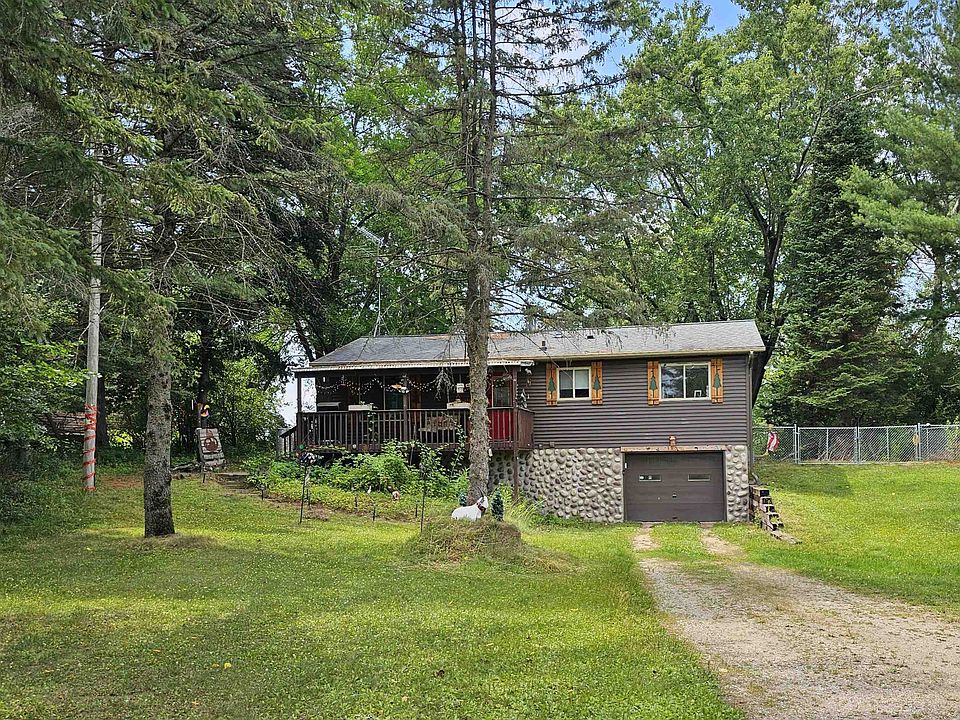 Don't miss this affordable Iola waterfront property!!! This 3BR/2BA home includes 2 parcels (#26-35-79-17 and 26-35-79-16) with approximately 500 ft of frontage on Lake Iola (per GIS Map). The fenced in yard has a large area to the waterfront and to your dock with floating dock. The extra parcel is a great buffer to enjoy the waterfront views/access. Beautiful sunsets! The 4 seasons room offers year-round lakefront views of nature! Lake Iola is a 220 acre lake offering year-round recreation with its great fishing (panfish, bass, Northern), kayaking, snowmobiling, and ice fishing. Includes pontoon, dock-all ready for your waterfront enjoyment! The lower level bathroom has a painted block wall.