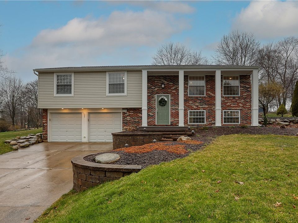 Located in the Blackhawk School District, just minutes from I-376 and Rte. 51, this very well-maintained split-entry home has many special features and updates including new vinyl siding, fascia, window casings, gutters, downspouts, leaf guard, and front porch renovation in 2021, new garage doors in 2020, and a new furnace and heat pump in 2019. The oak cabinets in the kitchen, primary bedroom, and en-suite bath are custom-made. The three-season sunroom was added in 2010 and the deck adjacent to it was built in 2015. An additional room in the lower level has been used as a bedroom but could be used as a craft room or office. The white columns, front porch, and stone walls and stairway are added features that enhance the curb appeal. 40-year asphalt shingles were installed in 2006. Many rooms were recently painted. This home is move-in ready!