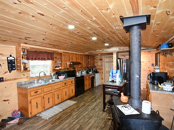 This home sits on a beautiful lot adjacent to Carter Caves State park. The home was recently remodeled and updated. The inside with beautiful wood that has a cabin feel to it, offers the split bedroom concept. The primary bedroom is large while the primary bath has a large tile shower. The kitchen is large with sufficient cabinets and a place for a woodstove for backup heat is all ready hooked up. The backyard would be a great spot for a garden area and there's already an extra building for storage.