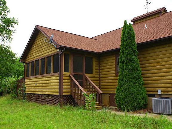 This spacious log home was built in 2004, and has only ever been enjoyed as a second home. Utilizing genuine log construction, this one-level residence features three beds/two baths, huge kitchen, and a large two-car garage. The deck is perfect for entertaining with entrances from the covered front porch, the french doors off the living area, and the screened-in porch off the kitchen. Thirty-year architectural shingles cover the home, which sits on a 2.00 lot in Sweetbriar Farms, a gated community with a desirable Lake Lure address. Here's a place away from the noise, it's also a great place to entertain. Enjoy the large kitchen and cook with friends, open the double french doors leading to the deck, there's plenty of room to entertain and spend time with company. Or cozy up to the fireplace and crack open a book, or ...whatever your own favorite method of relaxing might be. And this 1,600 square foot home gives you plenty of room to stretch out, without it getting to be too much to care for. Park out of the weather in the two car garage with oversized doors (your RV might fit!), and stroll down the hall to a great room with cathedral ceilings. The room is inviting with its rock-faced fireplace, and the kitchen just around the corner will help keep the conversation flowing. Easy care hardwood floors are throughout the living areas, with carpeting in the bedrooms, ceramic tile in the bathrooms, and life is made a bit easier by the central vacuum system. The large master suite features an en suite, of course, while the two smaller bedrooms are across the hall. There's so much paved area available, your friends won't have to park on the lawn during your annual bash. The covered porch along the entire front of the home gives you plenty of room to enjoy some shade, or watch a storm roll through. This property is just northeast of Lake Lure, which offers two marinas, so bring your boat! The lake features a public beach and a water park, too.. Rutherfordton, the county seat, is nearby (about a 20 minute drive), which offers more grocery stores, the hospital and other offices of health care, more restaurants, and neighboring Forest City has anything else you might want or need, like what is offered by Lowes, Walmart, Staples, and more.