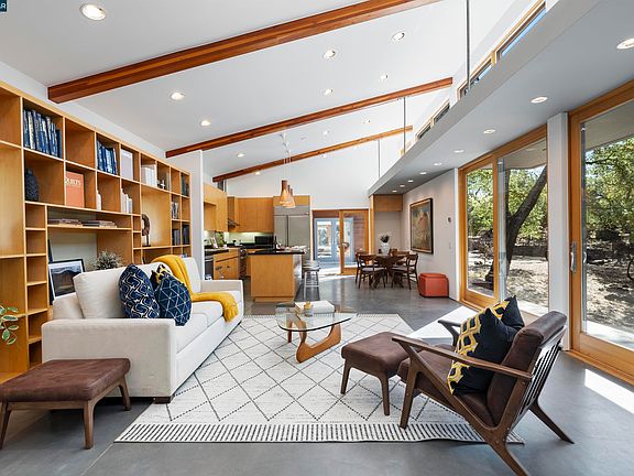 This striking custom home, designed by San Francisco architect John Klopf, features a modern aesthetic inspired by the simple sophistication of Japanese design. Located in Green Valley Highlands (one of the area’s best-kept secrets) on the edge of Suisun Valley AVA, it sits on a serene 1-acre lot at the end of a cul-de-sac. This elegant house is a study in the efficient use of space while providing a comfortable and easy-to-maintain home that is highly livable, indoors and out. An open breezeway between the main house and master bedroom offers a space for outdoor relaxation and transforms the master bedroom into a private sanctuary, while adding to the sense of openness that connects the indoor space with the beautiful outdoor setting—an essential characteristic of the house. Key features include a low-maintenance metal roof, FSC-certified redwood siding, radiant-heated stained concrete floors, and an owned 7.56kW solar system with backup batteries. The expansive 962sf garage, complete with plumbing, heat, storage, and a 240v/50A outlet, provides versatile use. A tool shed provides additional storage for garden supplies. Local activities incl wine tasting, road and mountain biking, hiking, golf, tennis, and Lake Berryessa. Easy access to I-80 & I-680.