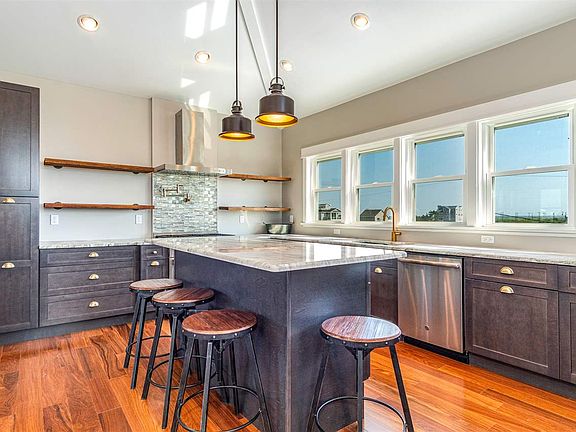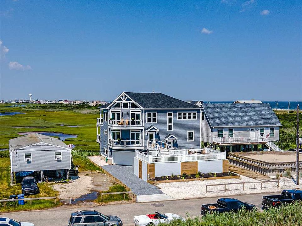 Brand new property in the stunning Whale Beach section of Strathmere. This custom construction home boasts a reverse living floor plan with sweeping water views of the ocean, bay, and preserved wetlands that frame the property. Upon entering the spacious foyer you will notice the Bellawood engineered hardwood flooring & elevated ceiling heights; both of which are found throughout the property. On this level is the luxurious master suite complete with a balcony, floating vanity & ample walk-in shower. Two additional junior suites both with private attached baths & a den complete this level. Heading up to the main living level the open living concept is perfected with living, dining, and kitchen spaces seamlessly blended. The custom kitchen includes stunning quartzite countertops, floating shelves, oversized bar height center island, & spacious wet bar. Adjacent to the kitchen is a shiplap focal wall with electric linear fireplace and wall mounted TV. Additional highlights include: 3-stop elevator, modern cable rail staircase, fenced-in cornhole/barbecue/party space, high efficiency zoned heating & air conditioning, three upgraded Polyurea decks, underground utilities, oversized garage, on demand water heater, screened-in porch, & more. Property is being sold partially furnished and ready for immediate occupancy. 115 Taylor is the perfect blend of an Outer Banks-esque location coupled with the charm of the Jersey Shore.