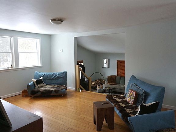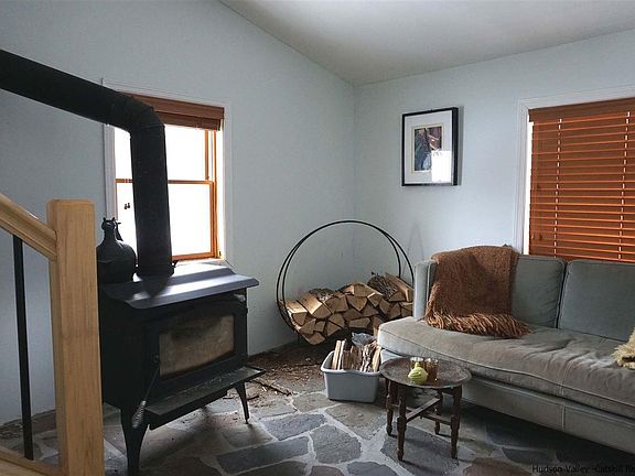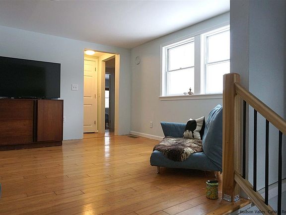 This charming farmhouse is all new again and so much house on 1.8 acres! The two tiered living room holds a cozy wood stove on a blue stone floor and the main tier gives you lovely mountain views from the main window and sustainable bamboo flooring. All new sleek kitchen with stainless appliances and lots of light. The main level also holds a nice bedroom with wide board floors and a sweet bath with claw foot tub. The second level holds a generously sized master with double closets along with another bedroom. And then there is the lower level with a den that could easily accommodate your guests with another nice bath and a studio room as well as access to the extensive back yard and furnace room. There is ample parking with a front and rear drive and parking area. Great location in West Saugerties with serious convenience to all that Saugerties and Woodstock have to offer as well as easy thruway access. You're going to love this one!
