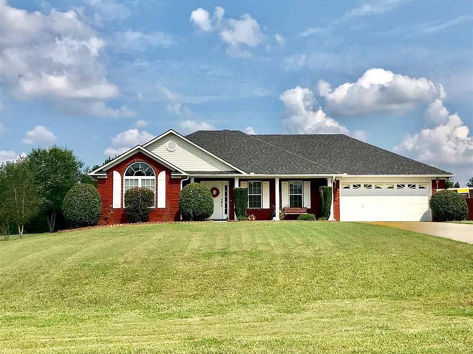 This 3 Bedroom brick home is gorgeous! Fresh paint, updated fixtures and lighting, and laminate wood floors throughout living areas make this home move in ready. Enjoy a low maintenance yard, open views, beautiful surrounding scenery, and a quiet subdivision while minutes from shopping, schools, and research park. Priced to sell! Isolated master suite features crown molding, large walk-in closet, bathroom with soaking tub and plenty of counterspace. Crown molding in Living room, vaulted ceiling 2nd bedroom.