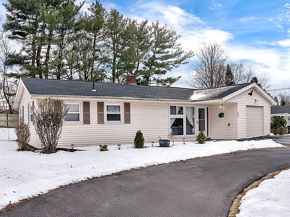 Charming 3-4 bedroom ranch, featuring a 1-car garage and plenty of parking with a convenient circular driveway. The home boasts low-maintenance vinyl siding, new roof, a screened patio off the family room, and forced hot water baseboard heating for cozy winters. Enjoy central A/C for those warmer months. The beautiful, fenced backyard offers a peaceful retreat, complete with a shed for extra storage.