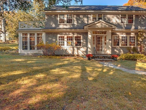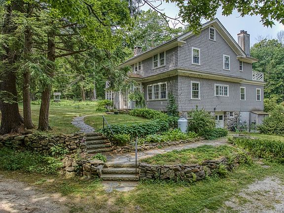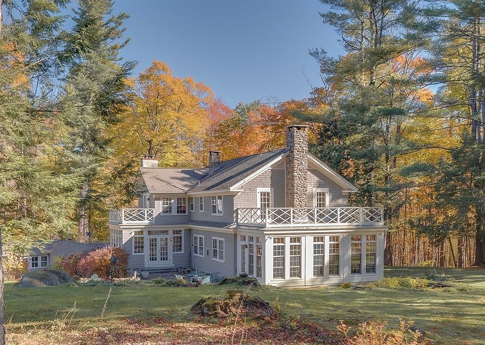 Unspoiled nature found here… 57 private acres. Understated elegance meets Henry David Thoreau-like charm.Mature perennial gardens surround this 9-room, 1927 cedar-shingled house a style blending colonial with the arts and crafts. The home sits on 57 acres with two potential buildable lots at the end of a town maintained gravel road, 1.5 hours from Boston.The main floor holds a large wood-paneled and beamed living room with a stone fireplace and a dramatic staircase. Also on the main floor is a large dining room with a fireplace and windows on three sides letting the outside pour in. A kitchen equipped with modern appliances has a classic Wolf restaurant stove. A smaller room off the kitchen is perfect for reading or media. Watch all outdoors from a radiant-heated sunroom. Upstairs is a large primary bedroom with a fireplace, sitting area, private bath and deck. Three additional bedrooms share another bath. If this is too good to be true - Come see for yourself.