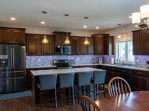 Come and see this absolutely gorgeous 4 bedroom home in Lexington loaded with all the extras! Meticulously built by Funk Builders with stunning stone accents, a magnificent kitchen, 3 car garage, stamped concrete patio, huge island, stainless steel appliance package, beautiful Amish cabinetry, pendant lights, and LOADS of counter space! The stone fireplace, spacious bedrooms with walk-in closets, 2 egress windows and professionally landscaping make this home the complete package! Imagine your guests entering your home and seeing the cascading ceilings, iron banister, and plush carpet. Modern finishes include the gorgeous granite vanities, tiled shower, extra large master bedroom, huge closet and cathedral ceiling in the master suite. There is a drop zone to hang backpacks and jackets at the back entry plus a half bath and separate laundry room. The added benefit of spray foam insulation is a huge bonus! Watch the gorgeous sunsets in the sought after Trail Ridge subdivision and enjoy the trails of Route 66 all year long plus the low maintenance of a 4 year old home!