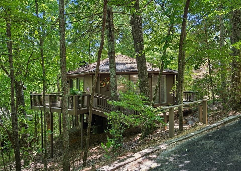 Renovated Treetopper in Big Canoe! Completely renovated (including both bathrooms!) with quality materials throughout. Two spacious bedrooms with two full baths that are all custom made renovations for the space. The Master Bath has subway tile and includes a glass enclosed walk in shower with vanity and built in shelving. The guest bathroom has a tub/shower combo with custom tile. The kitchen boasts custom cabinetry with a custom counter top and appliances to perfectly fit the unique space of a Treetopper. The wrap around deck was completely replaced in 2013 and extended for more outdoor entertaining, morning coffee or grilling out! This is the perfect place to relax, unwind and enjoy all that Big Canoe has to offer! It is located in the heart of Big Canoe near all of the amenities and has two parking spaces. This cabin is immaculately maintained and is turn key. Not only is this property gorgeous, it also has an excellent short term rental track record!