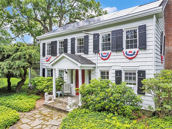 Travel back in time with this enchanting historical home that effortlessly combines old-world charm in a bucolic neighborhood nestled next to a castle. Sitting on a generous 1-acre lot and constructed in 1790, this delightful property is brimming with character around every corner. The main floor boasts a lovely staircase, cozy parlor, welcoming living room with a fireplace, dining room, kitchen with a butler's pantry, au-pair entrance, and more. Upstairs, discover 5 bedrooms, 3 bathrooms, and a back staircase leading down to the au-pair area. Relax on the screened-in porch with access to the flagstone patio, or enjoy the expansive rear yard perfect for gatherings, barbecues, and cozy nights by the fire pit. Balanced between historic elegance, this sprawling property offers original beamed ceilings and hardwood flooring, natural gas, solar panels, and convenience - located near major highways, shopping, schools, and restaurants. This property is a must-see! Come take a trip back in time and explore this charming slice of history.