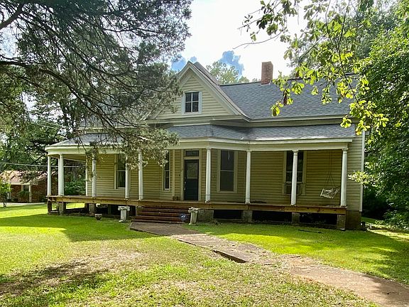 (AS IS)This home sits on 8.9 acres in town and has SO much potential. It features a wrap around porch, 12 ft ceilings, large rooms, built in book cases, sunroom with a butler panty, large kitchen pantry and tons of storage space. There is brazilian hardwood in master bedroom, gas logs, and floored attic space that could be used to add more rooms if needed. Call today to see this property.
