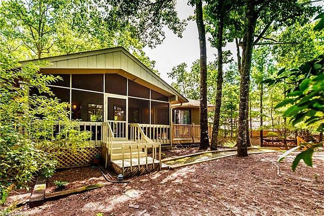 On a double lot, this unusual hilltop home has an open floor plan w/versatility & design options. Features include a lrg. kitchen & island w/generous storage & roll-out drawers, wide plank pine floors, 2 BRs w/decks on main level, bamboo floor in 2nd BR & newer decks, heat pump & hot water heater. LL has guest BR, FR, and greenhouse. Enjoy sunrise & sunset in a tree house setting near Lake Atagahi Park & clubhouse. A mtn. living bonus: a level driveway with plenty of parking. CFPOA fee $8,000