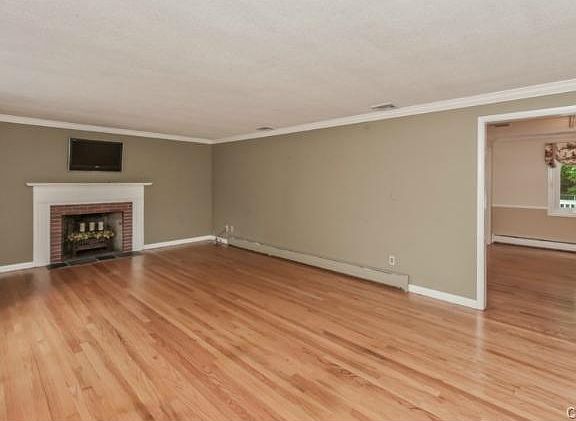Perfect in every way! There is nothing to do just move in! Sparkling new kitchen with beautiful cabinetry, granite counters, SS appliances and custom backsplash. Open floor plan, formal dining room with many details, included tray ceilings, chair rails and lovely chandelier. Sundrenched living room with large bay window and welcoming fireplace to warm the air on a cold winter night. Two very large bedrooms with ample closets. New bath, hardwood floors throughout. Relax in the pretty sunroom which affords extra space and opens to large back deck. Oversized basement has expansion possibilities. Just waiting for the family to grow! Pretty landscaped yard.