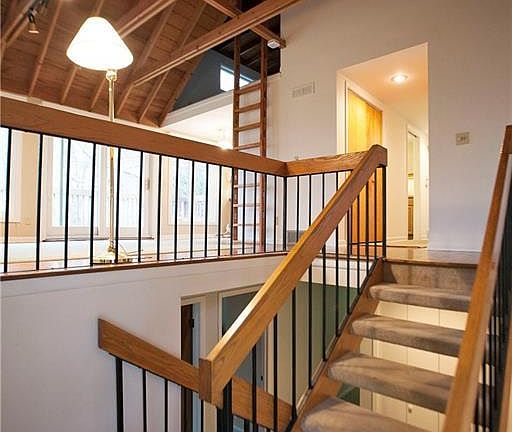 This unique contemporary designed home sits on 1.2 acres of complete privacy! The living room and family room have wood cathedral ceilings with wood beams! This multi-level also has a loft that looks out over the beautiful treed lot! The basement is also finished with a walk out to a deck - pure privacy & beauty!!! Property also has a creek running through it. Carport can be enclosed into a garage. Roof approx. 10 years old. The kitchen has Corian counter tops and a huge pantry. Must see!