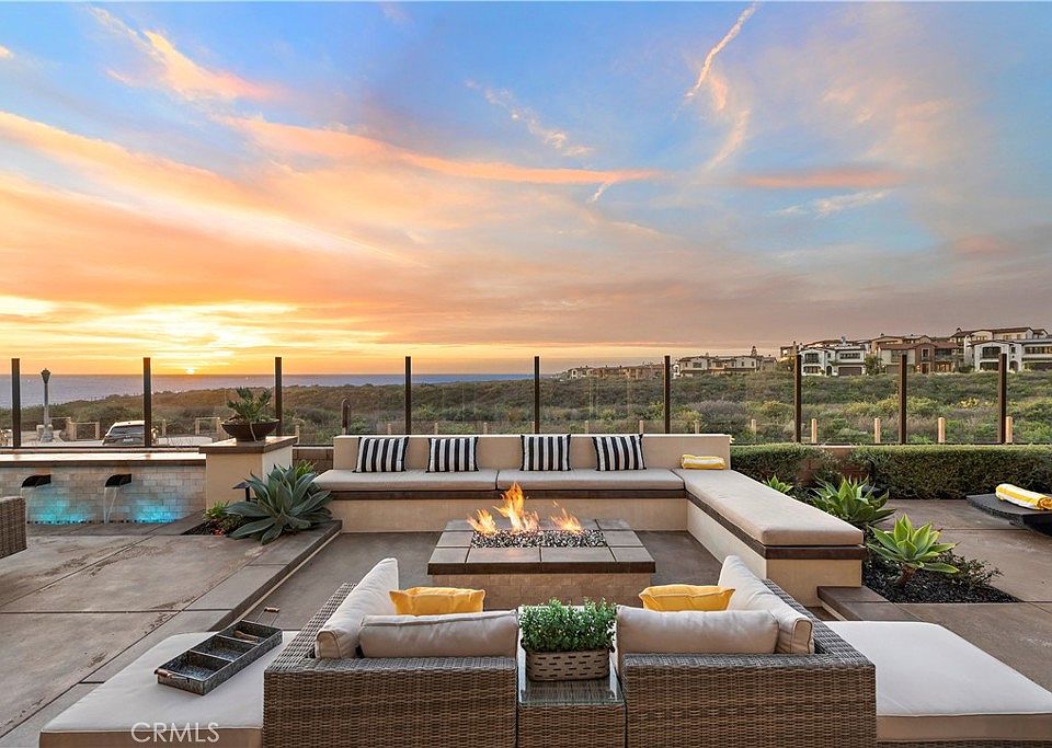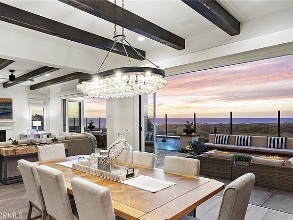 Sensational OCEAN PANORAMAS, immaculate finishes, & a peaceful cul-de-sac location shape this newer-build San Clemente residence into a dream haven you'll love to call home! Set in the sought-after Sea Summit community & exuding an impressive curb appeal, it greets you with a beautifully landscaped front courtyard surrounding & gorgeous brick exterior. Step inside to discover a modern interior defined by stunning finishes, crisp white tones, & wide-plank hardwood flooring gleaming under recessed lighting. Striking wood elements complement the sweeping layout, from exposed ceiling beams to unique built-ins. Oversized windows & multiple bi-fold doors capture breathtaking views of Catalina Island & the Pacific while allowing a seamless indoor-outdoor flow. Ideal for entertaining, the remarkable main gathering areas highlight a grand family room w/fireplace to mingle around while admiring sensational sunsets over the water. Steps away, the formal DR basks in the glow of a lavish chandelier that lends an excellent ambiance to intimate dinner parties. Every home chef will be delighted w/the expansive gourmet kitchen that showcases Wolf, Sub-Zero, & Miele stainless steel appliances. Chic industrial-style pendant lighting accentuates a multi-seater island that provides additional seating. Completing this impressive culinary space is a custom butler's pantry w/dual wine fridges. Before calling it a night, enjoy movies in the upper-level den w/built-in media cabinet. Indulge after a tiring day, the 4 well-sized bedrooms are privately set upstairs, each w/tastefully tiled ensuites & California Closets organizing systems. Surpassing them all, the primary suite delivers astonishing coastal views. Plus, its luxurious bath has a double vanity, an oversized soaking tub, & separate glass-enclosed shower to offer you a spa-like relaxation. Weekends are best spent in the oasis-inspired backyard that treats you to multiple seating areas, including a secluded atrium with a built-in fireplace & patio with a fire pit. Unwind in the spa or host cookouts in the custom loggia w/outdoor heaters & a BBQ station equipped w/Wolf appliances. Notable features include an office & 3-car garage w/epoxy-coated flooring, cabinetry, & extra storage. With a fabulous location, this incredible gem is just moments away from community amenities, downtown San Clemente, shopping, & restaurants. All this & more could be yours, so come for a tour before this exciting opportunity is gone for good!