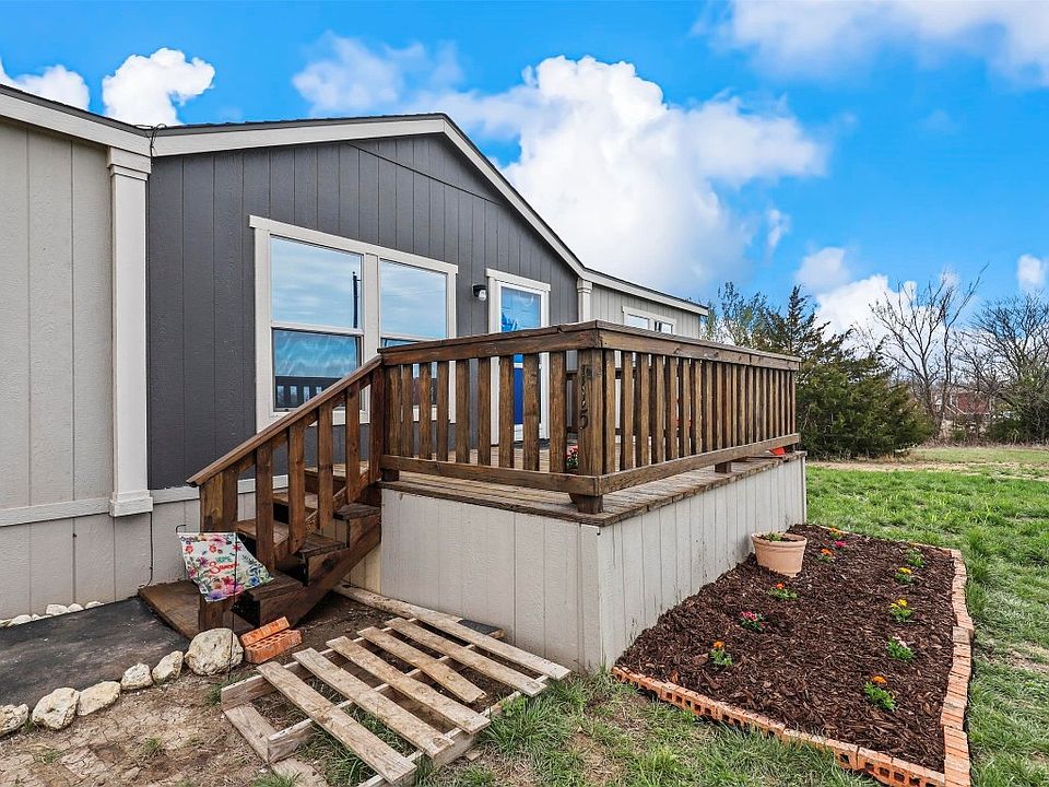 Almost new manufactured home on almost an acre. Split bedrooms and open floorplan with a built in desk area in the kitchen. 3 large bedrooms with 2 full bathrooms. Private location with lots of room for kids or pets to run and play. The Home has had dirt work so that any rain is diverted around the house and not underneath it. Gravel driveway. Dog run and front and back deck. Roof was replaced in 2022. No restrictions and ready for a new owner.