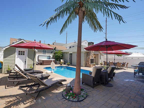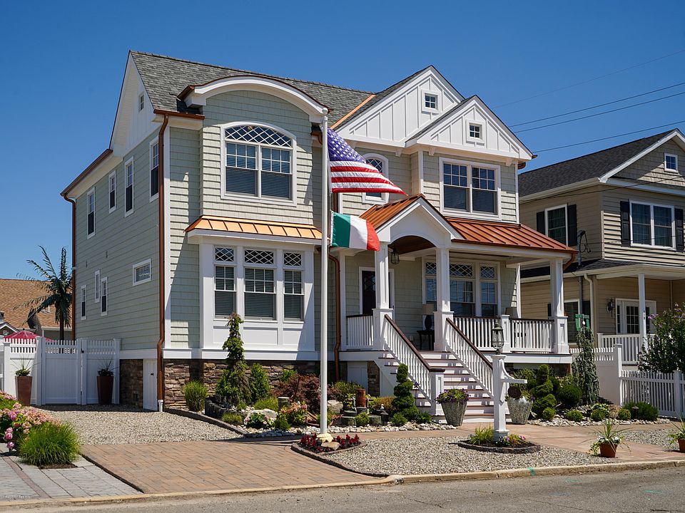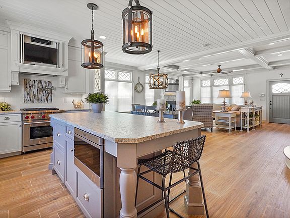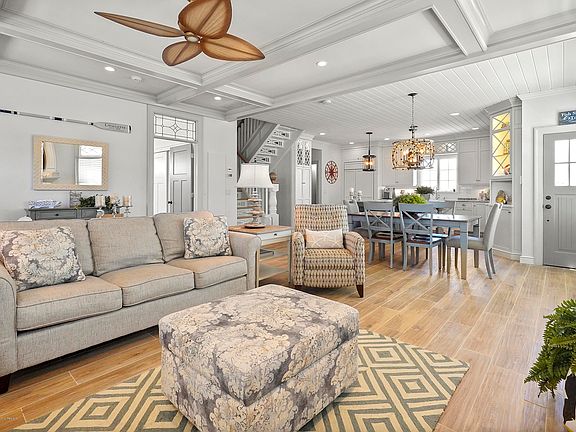 TRULY ONE-OF-A-KIND! BUILDER'S OWN, FEMA compliant home features exceptional style and high quality, low maintenance materials and boasts private backyard oasis anchored by saltwater pool. It's everything a beach home should be and more, with unique design elements, custom built-ins and window seats, leaded glass + clerestory windows, custom staircase with carved risers and wood inlay, cathedral ceilings with mahogany and shiplap accents, decorative moldings & much more. Floor plan is comfortable & inviting - open living room/gourmet kitchen (fun to entertain!). 1st fl bedroom suite, 2nd floor den for video games/movies. Plus wood-look tile & hardwood floors, custom closets, w/d on each fl. AND a backyard oasis! Saltwater, heated pool. Hot tub. Pool house. Outdoor shower. Even a sauna!