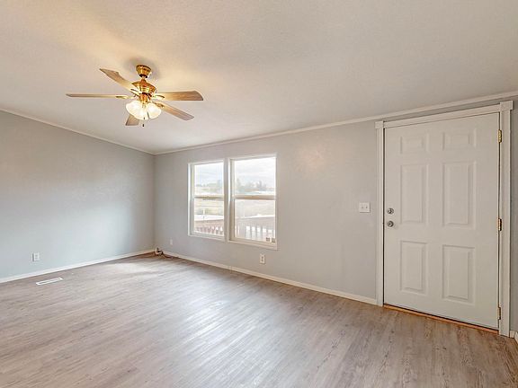 Updated 3 bedroom, 2 bath double wide on just over 1 acre of fenced property! Two neighboring lots. Home is serviced by all city utilities! Updates include flooring and paint throughout, new cabinets/counters/sinks/vanities, double pane insulated windows, new stainless steel appliances, washer & dryer included, & garbage disposal! All electric except for furnace. Two covered porches front and back to enjoy, carport, tool shed, 2 workshops/garages (larger one fits 40 ft RV and has electricity). Home is located close to town, but offers the privacy of a country setting! Xeroscaped lower maintenance yards. Deactivated title and permanent foundation! Come tour this home today!