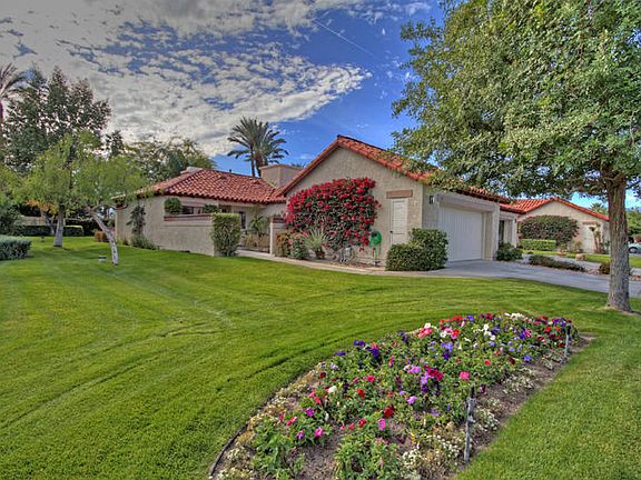Welcome to a desirable Desert Oasis in the sought after Desert Falls Country Club - single-story 2 bed / 2 bath (1 master en-suite) with a 2 car garage and two private enclosed courtyard patios surrounded by beautiful floral and Bougainvillea trees. The community offers semi-private 18-hole Championship Golf course (pay as you play), Clubhouse, Fitness Center with yoga classes in season, 9 lighted Tennis Courts, Pickleball Courts and 20+ pools and spas, 24-hour guard gated entry, water features, palm trees and serene views of the desert mountain landscape, and walking distance to shopping, dining & hiking. This recently remodeled, turnkey property with fully furnished option has cathedral ceilings in both the Living Room and Master Bedroom, Fireplace, double-pane Windows, Shutters, and quality Laminate Flooring in common areas and built-in cabinetry! Master Bedroom featuring french doors opening to private patio and remodeled Master bath. The well-lit Kitchen includes Granite counters, sink overlooking trees, Stainless Steel Appliances and Smart Thermostat & Garage door opener. Dining area with a view to the enclosed private patio. New HVAC unit, Roof upgrade less than 2 years & Laundry in Garage. Monthly HOA dues include - Wifi, Cable, Pools and Spas, Fitness Center, Tennis, Pickleball, 24/7 Security, Landscaping.