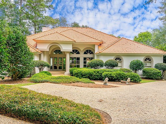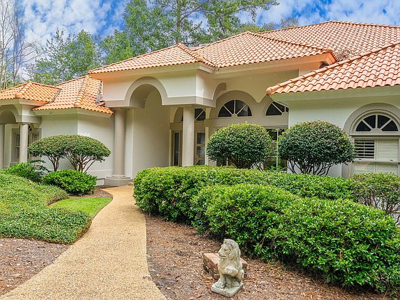 Stunning lakefront home in Canebrake's Country Club Community. Large lot & boathouse equipped w/ hoist & 2 jet ski lifts ready for you to fill your weekends with fun! Unwind or entertain while appreciating big water views from most rooms of this immaculately cared for Mediterranean style, open concept 4-5 bed/ 3.5 bath spacious home w/ all bedrooms located on the main level. Bonus room & bathroom located on second level provides an excellent game room, gym, office or additional bedroom! Prepare to be WOWED by the foyer, great room w/ 2 story high ceilings & efficient windows spanning the rear of the home allowing natural light to pour into this EXTREMELY energy efficient home.
