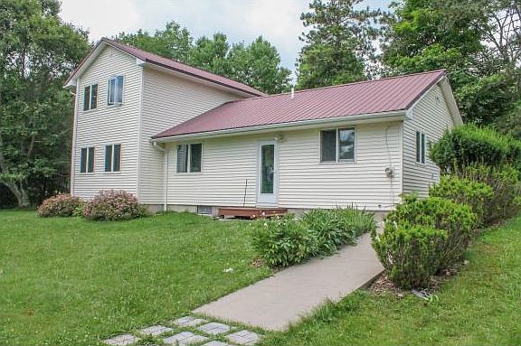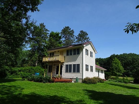 1957 Ranch home with a 1999 two story family room and master bedroom suite addition, complete with solar panels, two walls of windows to the woods, deck off the family room and a newly added upper balcony. Brand new flooring in the front portion of the house, Freshly painted kitchen with brand new stove and range hood. Grassy back yard is flanked by tall trees and about 2 acres of woods with a trail though them.