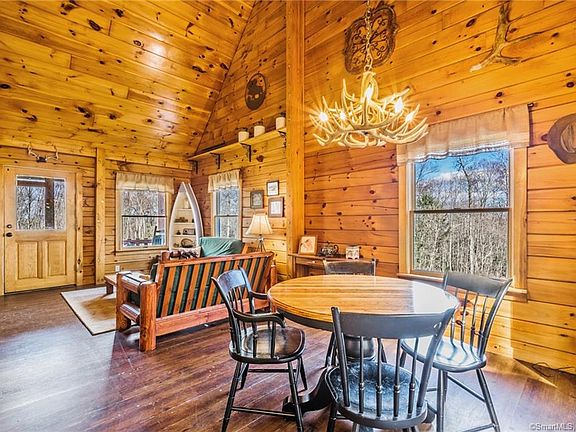 OPEN HOUSE CANCELLED *RARE FIND* LOG CABIN HOME ON 11+ ACRES - 3 STALL BARN - 2 HEATED OUTBUILDINGS - POND * This property has so much to offer! The home is set way back off the road and was lovingly cleared built by the current owner in 1999. The home and property have been consistently given updates, including a new full bath in the lower level, exterior restained, new appliances and more! Enjoy the country life sitting on this front porch overlooking this beautiful setting! When you enter the home you will enjoy the log cabin living with all the beautiful wood, cathedral ceiling and 2nd floor loft / bedroom. The main room is open to the kitchen and also a slider to the large, 16 x 16, deck perfect for entertaining and enjoying the view that overlooks the field and fire pit. The deck also has easy access to the hot tub out building! The lower level walk out is finished with a family room, full new path room, 3rd room currently being used as a bedroom and an enclosed sun porch. The barn is a 3 stall barn with Dutch doors, plus a heated workshop and hay storage. There are also 2 heated offices/workshop/art studios with bathroom and kitchen, perfect for so many options. This is truly a one of a kind property!!!!