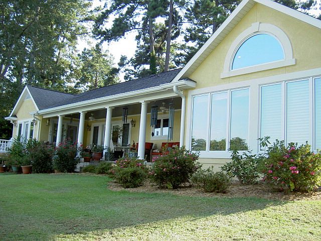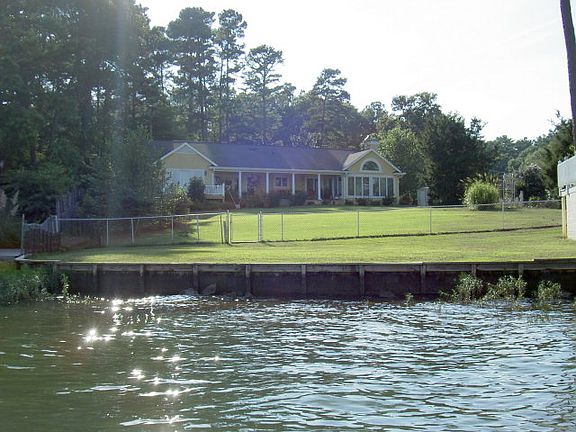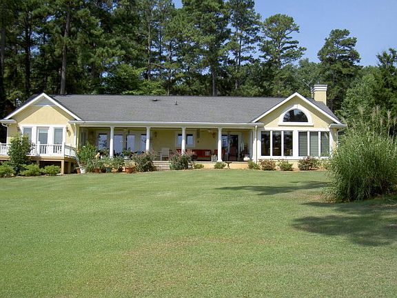 Unique Lake Sinclair Lake Home with lots of style. Big water lake views from all rooms due to this wide open floor plan. Two bedrooms have been opened to view lake (through den and kitchen living areas). Very well maintained and in excellent condition. Two water heaters for zone water heating as with HVAC as well! Kitchen is well equipped including a Viking Professional 6 burner stove with griddle and two ovens. Eat at island work space. Two pantries and lots of storage. 18' by 10' enclosed sun porch with wood tongue and groove walls and ceiling(vaulted). Master suite has twin walk in closets, twin vanities, walk in shower, garden tub, enclosed water closet. Tray ceiling in Master Bedroom. Large fenced and beautifully landscaped yard looks to wide view of BIG water. Sundeck at lake. Dock.