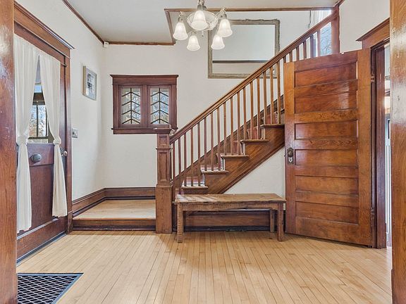 Have you been looking for charm and character to settle down in? This house has an abundance of it. Cozy up in the living room with the wood burning fireplace and enjoy the hard wood floors and bead board ceiling. Original kitchen cabinets in great condition. Herringbone details in some of the windows. Upstairs offers 3 spacious bedrooms and a full bath. Full height basement offers a well thought out workshop (unfinished room 1) and an enclosed front porch for summer time enjoyment. Property is sold as-is with 1yr home warranty.
