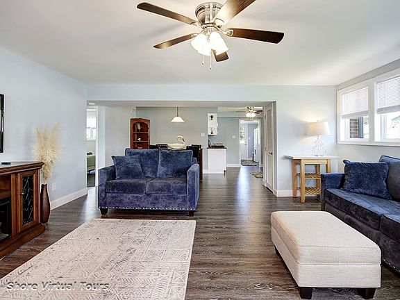 BAY BLOCK BEAUTY only five houses from the bay! Come see this very recently renovated home on a large lot with an oversized detached garage with plenty of room for fishing gear, beach toys, and storage. Enter the home through an awning-covered front porch into an open floor plan. New flooring throughout living room, dining area, kitchen, and utility room. Brand new kitchen with new cabinets, , tile backsplash, and appliances. To the left of the great room is a small hallway with access to a guest bedroom, the hall bath, and the master bedroom with en-suite bathroom. Behind the kitchen is the utility room, the 3rd bedroom, and the access to the outside entertainment area and backyard. There is plenty of room for lounging after a day at the bay, and is fully fenced in. HVAC unit and hot water heater are just two years old. Easy to show.