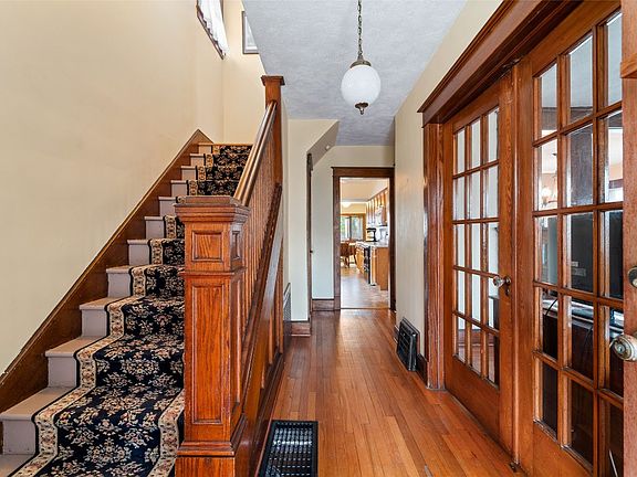 A must see charmer so much larger than it looks! This meticulously maintained two story features walk in closets, updated bathrooms, a first floor bedroom/or office with a bathroom attached. Kitchen has a breakfast nook, and lots of cabinet space with pull out drawers. Deep drawers for pots and pans. Front and back doors feature stained glass windows. Hardwood floors through out much of the house are in beautiful shape. Water heater is only 1 month old. Newer roof. Municipal electric and an new 200 Amp electrical service installed. Finished Lower level for extra living space. One car detached garage with additional loft storage. Lovely fenced in yard and concrete patio all set to add your outdoor décor. Fireplace in the lower level was wood burning but the chimney was removed. The fireplace is currently not functional. Potential to have an electric or ventless insert added. Lots of natural sunlight through out the house. You wont want to miss this property!