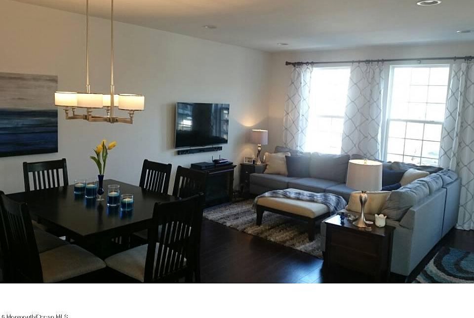 Gorgeous end unit townhouse built in July 2014 with lots of natural light and backing to open space. 9 ft ceilings, Mannington wide plank hardwood floors and ceiling fans in all bedrooms. Master suite has walk in closet, granite countertops, dual sinks, and tiled shower with glass enclosure. Guest bath has quartz countertop and white subway tile. The kitchen has granite counter-tops, 42 inch cabinets with under cabinet lighting, stainless steel appliances, walk-in pantry and deck to enjoy the beautiful sunsets. 20 minute drive to Belmar and 10 minutes to Freehold Raceway Mall.