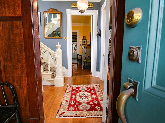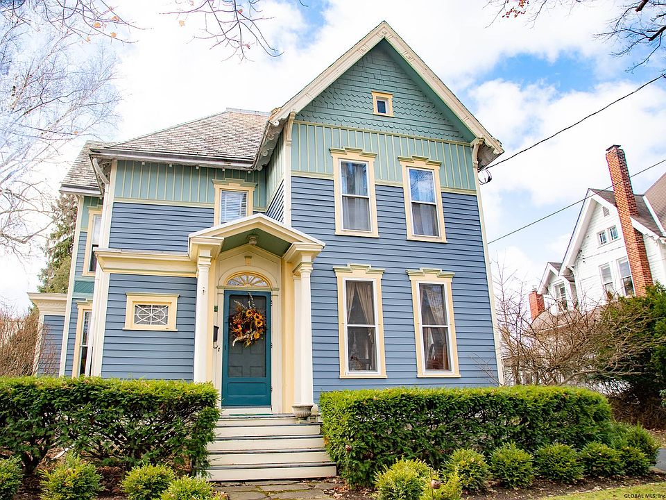 This gracious Victorian is elegantly situated along a mature tree lined historic village street. Come inside to this beautiful home steeped with original charm and character, featuring a grand foyer, graceful staircase, moldings and woodwork throughout. Plenty of living space with 4 bedrooms, 1 full bath, 1 partial bath, shower room, large living room with fireplace, formal dining room, cozy family room and kitchen. The kitchen has beautiful cabinets from floor to ceiling, plenty of storage and modern touches. The outside is nicely landscaped with boxwood's lining the sidewalk and a beautiful formal perennial garden outback. Detached carriage barn with newer metal roof and loft space inside for that perfect studio. This home will surely impress you!