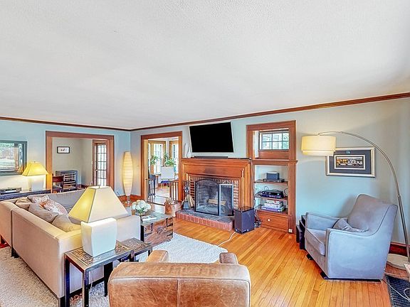 Classic Tudor style home w/ warm wood accents, vintage charm & great space offers a total of 2,712 SF in 8+ rooms, 4 bedrooms, 2 full & 2 half baths. 3rd floor offers more living area now used as a home office, play room/den w/closet, walk-in closet & half bath. Big living room w/ bay picture window, custom built-in shelving & 'decorative only' fireplace is open to both sunroom/playroom & formal dining. Comfortable Eat-In kitchen. Built-in features on every level. Updates include new roof 2010, remodeled master bath w/ tiled walk-in shower w/seating 2015, new front walkway '07, new driveway '18, and new stucco on entire front of home 2014, new attic window, MBR window, updated half bath on main level 2014 & fresh paint in many rooms. Air conditioned/heated w/ductless mini-split system on 3rd Flr only. 4 window unit ACs are included. Updated 200 Amp Circuit Breaker box. 240 Volt outlet at Garage. Water heater new in 2016 & deck redone in 2018. Centrally located. Leased thru mid June