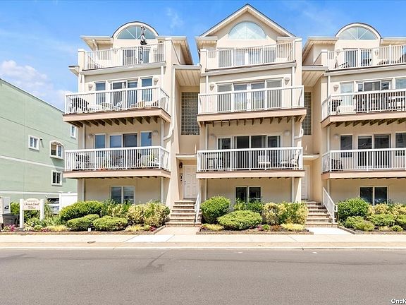 Upper Unit & impressive 3 (or 4) bed w/2 baths duplex townhouse with gorgeous ocean views from the two front facing balconies is a dream come true. Located directly across from the beach and boardwalk and centrally located close to the train to NYC and multiple shops and restaurants, this beautiful townhouse offers easy access to the seaside and all the activities it offers. The main floor living room with its beautiful hardwood floors and high hats throughout creates an elegant and comfortable living space. The kitchen's stainless steel appliances and island provide both style and functionality, making for easy meal preparation. A bedroom located near the living space is perfect for guests or children, and an extra room on the main floor can easily be used as a private dining room or an extra bedroom, allowing great flexibility in how the space is used. The top floor features a spacious primary bedroom and en-suite bath with a balcony with stunning ocean views. Also featured is a third bedroom, and a private laundry room with washer and dryer offering convenience. There is ample storage space in the attic,located off the laundry/utility room where a brand new HVAC system was installed in Sept 2022. A garage and designated extra parking spot in the back is a huge advantage, as parking is often a challenge in beachside locations. The townhouse is pet-friendly and excellent news for those with furry companions. Enjoy the oceanfront boardwalk with a leisurely stroll and indulging in ice cream from Marvel across the street, this townhouse is the perfect combination of luxury, comfort and convenience, making it an ideal place to live for anyone who enjoys an active, beachside lifestyle.