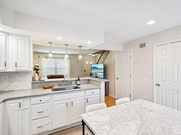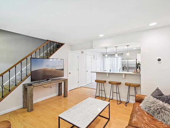 This recently renovated townhome has been transformed into a beautifully open living space that is both light-filled & warmly inviting. Less. than 4 years ago, the home's 1st floor was thoughtfully opened up to create an effortless, seamless flow between the living room and kitchen areas. A slider from the kitchen, leads to the outside deck & backyard. The kitchen sparkles with recessed lighting, shaker-style cabinets, quartz countertops, a stylish backsplash, and stainless steel appliances. A bar top with additional seating completes the space, while the first floor features a convenient half bath. Upstairs, the two bedrooms exude a cozy, intimate ambiance, with plush carpeting and soothing, neutral color palette that cultivate a truly relaxing retreat. The fully renovated bathroom, outfitted with sleek, modern fixtures and high-end finishes, emanates a spa-like serenity. The additional open-concept living space in the basement provides even more room to spread out, whether one desires a dedicated home office, a gym / work out area, media room for movie nights, or a casual hangout area for entertaining guests. The basement includes ample storage space as well as a tucked away laundry area. New windows recently installed. There are two reserved parking spots outside of the home. This one wont last long. Call today to schedule your tour. Showings start 6/7.