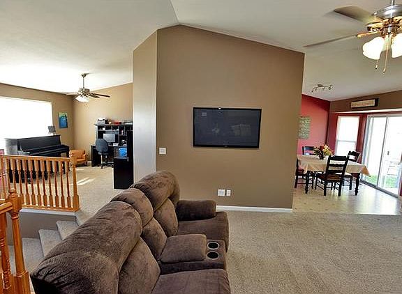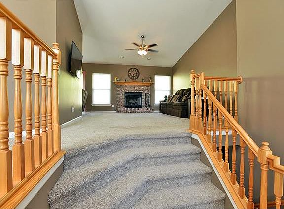 NOT YOUR TYPICAL SPLIT FOYER PLAN - Awesome angled hardwood entry makes such an open floor plan. Fantastic flow of great room, kitchen/breakfast room and dining room. Vinyl fascia, soffits and front porch railing for low exterior maintenance. New carept, newer water heater brick hearth fireplace, bay windows, patio off breakfast room. Large master bedroom with walk in closet, master bath offers double sink with separate tub and shower. Oversized 2 car garage for ample storage. Family room in lower level has plenty of large windows adding to the open floor plan concept, surround sound and rough in plumbing. This home SHOWS LIKE A DISPLAY - Very Sharp Home!