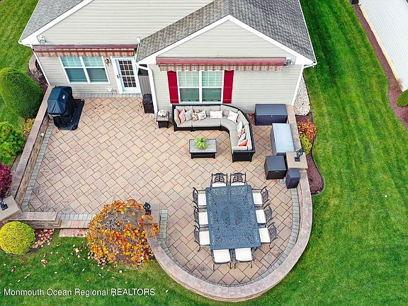 Welcome to the luxurious living in the highly sought-after adult community of The Four Seasons at Manalapan! 3 bds and 2 full baths, pristine porcelain flooring, providing a seamless and sophisticated touch that spans across every room. The living and dining areas are graced with decorative molding. The heart of this home lies in its gourmet kitchen, with a center island, granite countertop, stainless steel appliances, a generously sized pantry, and a charming breakfast nook. The family room features a beautiful built-in wall unit that adds both style and practicality. This space seamlessly connects with the kitchen, creating an open-concept layout. WIC and a full bath in the master bedroom. Wood flooring in all 3 bedrooms adds a touch of warmth and refinement. Walk-up attic stairs Welcome to the luxurious living in the highly sought-after adult community of The Four Seasons at Manalapan! 3 bds and 2 full baths, pristine porcelain flooring, providing a seamless and sophisticated touch that spans across every room. The living and dining areas are graced with decorative molding. The heart of this home lies in its gourmet kitchen, with a center island, granite countertop, stainless steel appliances, a generously sized pantry, and a charming breakfast nook. The family room features a beautiful built-in wall unit that adds both style and practicality. This space seamlessly connects with the kitchen, creating an open-concept layout. WIC and a full bath in the master bedroom. Wood flooring in all 3 bedrooms adds a touch of warmth and refinement. Walk-up attic stairs provide easy access to plentiful storage space. Backyard oasis where an awning provides shade over a charming patio area. The corner lot home offers both privacy and a sense of spaciousness. Enjoy amenities of swimming pools, tennis courts, bocci, shuffleboard, and jogging path. Don't miss the opportunity to make this house your home and experience the pinnacle of luxury living in The Four Seasons at Manalapan!