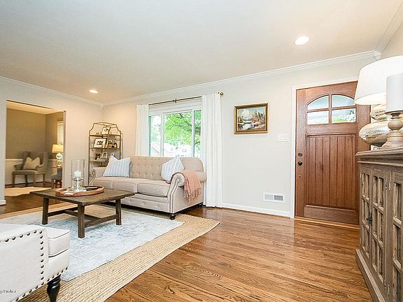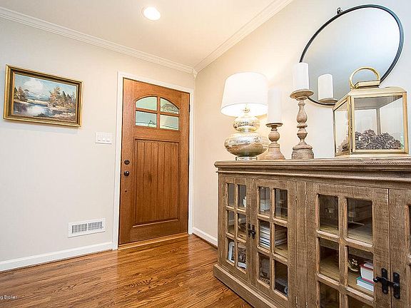 COMPLETELY RENOVATED ranch home conveniently located just off Shelbyville Rd in the quiet & desirable neighborhood of Bellemeade! NEWER windows, AC & water heater-ALL only 2 years old! Refinished hardwood floors throughout the entire first floor greet you as you enter into the living room with fireplace. The dining room/office is conveniently located between the living room & huge eat-in kitchen with stainless appliances, granite countertops, center island with breakfast bar, spacious breakfast area with charming brick fireplace & an abundance of natural light through the new sliding door with access to patio. The master bedroom features a beautifully renovated en suite with tiled walk-in shower. Two additional bedrooms & a second renovated full bath round out the main level. The lower