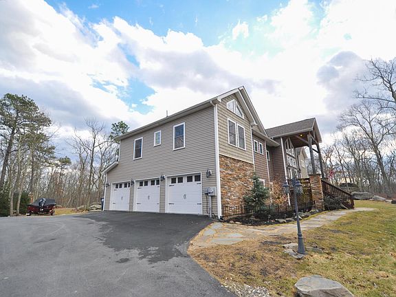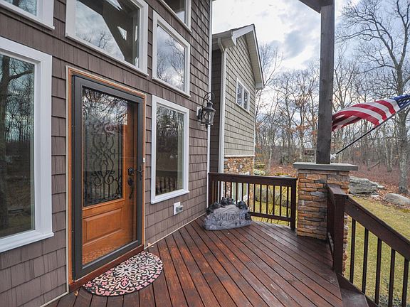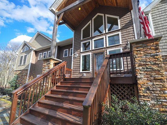 Blue Heron Woods Custom Built Dream Home! This luxurious 4 Bedroom, 5 Bath home set on 2 acres in a high-end community spans over 4,000 SF has an immaculate & elegant open floor plan graced by soaring cathedral ceilings, hand-scraped hickory wood floors and wall-to-wall windows - a haven for gazing out to your private backyard. Where indoor living meets outdoors, this home has a covered deck with an outside wood burning floor-to-ceiling fireplace and lower custom patio perfect for entertaining. As you enter this light-filled home, the grand entry way with a sweeping staircase draws you into a voluminous layout - cozy up to the stone floor-to-ceiling fireplace or entertain in your gourmet chef's kitchen with custom cabinets, granite counters, pantry & SS appliances.