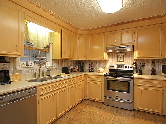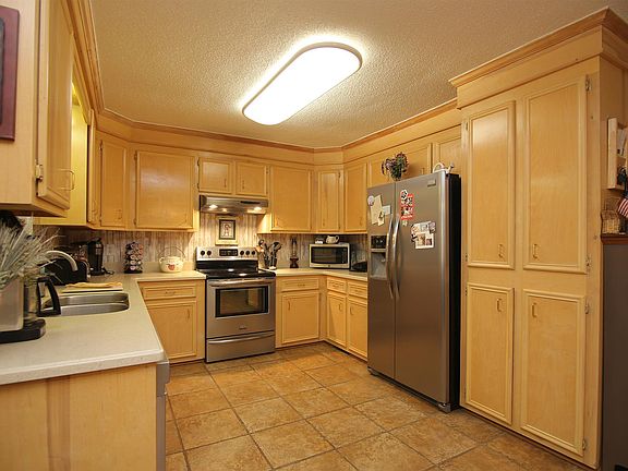 - RoomKitchenFeatures: Eat-in Kitchen, Cabinets-Stained, Floors-Tile, Counter Tops-Solid Surfac