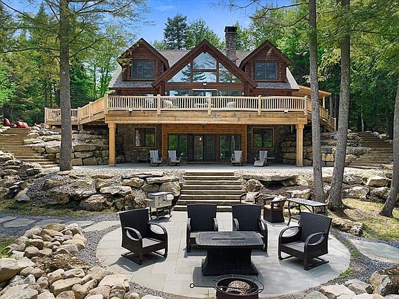 "Camp Bear Claw" an immaculate retreat hosting 3 bedrooms & 4 baths, a sunroom, pantry, separate washer/dryer area with storage and sink, & a open living room & kitchen area that overlook the elegant flagstone landscaping and backyard. Boasting stone countertops, tile showers, log interior, & a wrap-around log deck with "lean-to" area that leads from the master bedroom. Upstairs you will find two bedrooms and one bathroom with dual loft spaces that overlook 151' of waterfrontage on the Twin Pond Outlet that leads into the Fulton Chain of Lakes. The finished walkout basement has a bonus room, full bathroom, closet area for snowmobile gear, double sided stone fireplace, bar area, and radiant floor heating. The four stall heated garage is 2,340 Sq. Ft. w/ a 3 Bed bunkhouse & deck above. Enjoy 4.40 Acres of wooded privacy from neighbors, yet close enough to walk to the village of Old Forge. Owner has a 20' I/O that they keep & navigate to the Fulton chain from their dock. Turn-key!