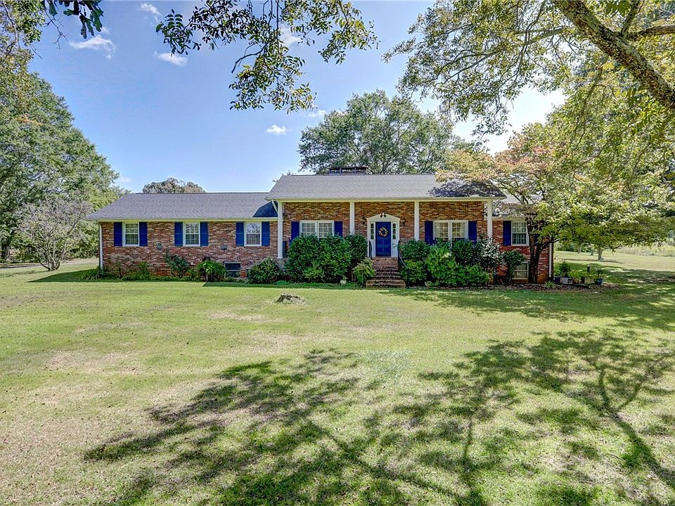 ACREAGE - 14.5+/- ACRES in Easley! Hard to find opportunity to own a home and land so close to shopping, dining, and across the street from Easley High School! You'll experience country living and convenience all at the same time! Immaculate Brick Ranch sitting on a sprawling 14.5+/- acre property! The tree-lined driveway welcomes you to this well maintained home situated on an expansive lot! A charming rocking chair front porch perfectly introduces this wonderful home! As you enter, you are greeted with a nice-sized foyer and formal living room, perfect for greeting your guests and loved ones! The Dining Room flows effortlessly into the Kitchen featuring stainless appliances, granite countertops, and a convenient peninsula with pull-up bar seating! The Kitchen is open to the spacious Den featuring a fantastic gas fireplace and exposed wood beams on the vaulted ceiling! You will love sipping your morning coffee or hosting friends and family on the enclosed back porch with views of the immaculate property, like something out of a storybook! A hall from the Den guides you to the two guest bedrooms, guest bathroom, and the nice-sized Owner’s Suite with an ensuite bathroom and walk-in closet! Downstairs, you will be delighted to find the massive, partially finished basement offering ample space for storage or a blank canvas to create more living space, a wine cellar, or a game room! You will love owning this desirable property within 15 minutes of convenient shopping, dining, and entertainment along Calhoun Memorial Highway and Downtown Easley! Do not miss your chance to see this rare find today!